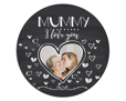 Ti diamo la possibilità di realizzare direttamente online, lo stile del tuo tappetino mouse dalla forma circolare; progettato con il motivo grafico dallo sfondo grigio scuro, con cuoricini e scritta in bianco, sarà in grado di stupire.