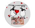 Scegli di stampare sul tuo tappetino per il mouse, la tua foto, immagine o sfondo, da abbinare al motivo grafico, con le piccole pecorelle, con cuori rossi e lo sfondo nel colore grigio.