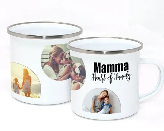 Personalizza questa tazza, dall'aspetto familiare ed evocativo, con una delle nostre grafiche studiate per aiutarti a renderla unica. Troverai disponibili grafiche per le diverse ricorrenze da completare con le foto che più ami e che potranno conquistare il destinatario del tuo dono.