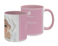 Nel colore rosa, con la cornice in bianco stilizzata e la croce su sfondo a pois, sarà in grado di sorprendere con il suo aspetto straordinario; fai in modo che la tua foto tazza possa essere anche personalizzata con una scritta, frase o messaggio carino.