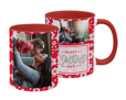 Scegli la possibilità di realizzare online la tua grandiosa tazza personalizzata e di decorarla con la stampa della tua foto, immagine o sfondo da abbinare al motivo grafico con fiori bianchi, disegnati su sfondo rosso e abbinati alla cornice con scritta.