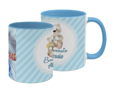 Personalizza lo stile di questa tazza in ceramica e fatti conquistare dal suo motivo grafico dallo sfondo celeste con fasce, orsetto stilizzato e la cornice nel colore bianco; dedicato ai piccoli maschietti, verrà decorato con la tua foto, immagine o sfondo, che andrai a caricare dal tuo dispositivo.