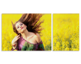 La tua foto su tela verrà riprodotta sui due pannelli distanziati dalle due figure differenti: potrai anche scegliere due immagini diverse o magari abbinarci una scritta, un testo o un messaggio; potrai anche cambiare il colore di sfondo prediligendo quello che preferisci dalla tua tavolozza colori.