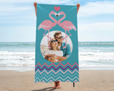 Telo mare in microfibra 80x150cm con riquadro tondo e 2 fenicotteri