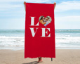Telo mare in microfibra 80x150 cm con scritta love e riquadro a forma di cuore