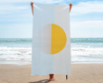 Telo mare in microfibra 80x150 cm bianco e celeste con sole giallo