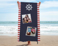Telo mare in microfibra 80x150 cm Collage 2 riquadri con sfondo blu e timone