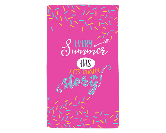 Il tuo straordinario telo mare in spugna potrà essere personalizzato con la stampa della tua foto, immagine o sfondo da abbinare al motivo grafico con sfondo nel colore rosa, con decorazioni colorate e scritta posta al centro.