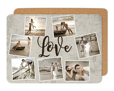 Se hai intenzione di creare questa tovaglietta personalizzata, non ti resta che caricare le tue foto, immagini o sfondi, all’interno di questo motivo grafico collage con sfondo tenue, riquadri nel colore bianco e scritta posta al centro.