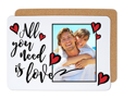 Scegli di affidarti all’originalità di questa tovaglietta in sughero, da decorare con la tua foto, immagine o sfondo da abbinare al motivo grafico con scritta nera, cuori stilizzati e sfondo bianco.