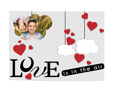 Scegli di personalizzare il tessuto della tua tovaglietta, con una foto, immagine o sfondo da inserire all’interno della nuvola, di questo motivo grafico con cuori e nuvole appese, completate con scritte stilizzate, il tutto su sfondo grigio.