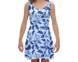 Vestito smanicato taglia M sfondo bianco e foglie blu